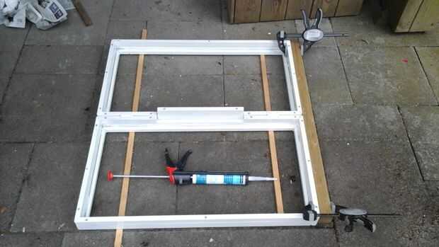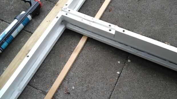 Coloque el marco tan plana como sea posible. Si el marco tiene una torcedura en este punto, esto se pega en su lugar.