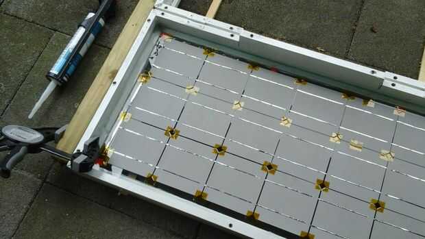 Use agua con lavavajillas y el dedo (y un montón de papel) para la Junta de silicona. No sólo esto hace la Junta de silicona ver más agradable, también hará que la Junta selle mejor. Ser SUPER cuidadoso aquí no para obtener las células húmedas. Me dieron unas gotas de agua en las células, me tomó una hora con un secador de pelo para conseguir el agua de las células otra vez.