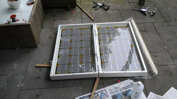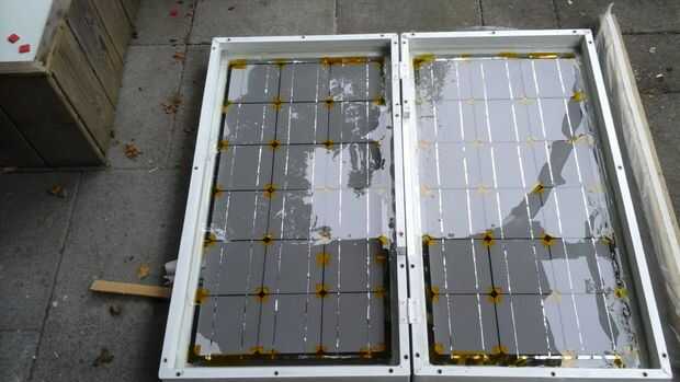 Para os va a necesitar una capa lo suficientemente gruesa como para cubrir sus células. En mi caso los paneles son 44cmx82.5cm (convertida a cm por razones de cálculo). Estamos suponiendo aquí que epoxy pesa 1kg por litro. la mejor cantidad que puedo conseguir es 1,6 kg. Esto me da una capa de unos 2, 5 mm. Esto fue suficiente para encapsular un panel.