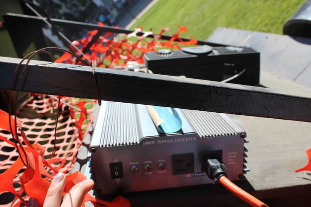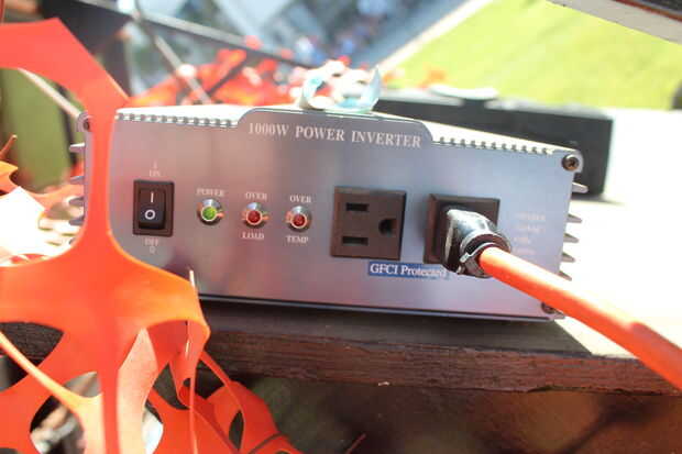 Este sistema tiene un inversor de 1000 W, aunque probablemente podría tener un inversor de más grande. Tiene dos salidas de 120 v que cualquier dispositivo se puede conectar a, asegúrese de que usted no va sobre el 1000W porque entonces podría fusible del inversor.