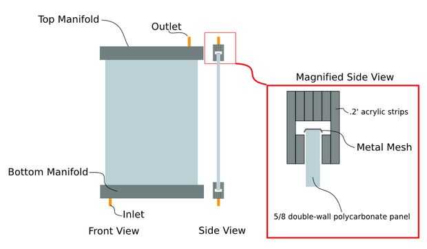 Ya que no apreciar que podría simplemente doblar el acrílico, cortar tiras de.2'' hojas gruesas y pegadas ellos juntos en una "C" de la abrazadera forma, como se puede ver en la vista lateral ampliada en el diagrama.