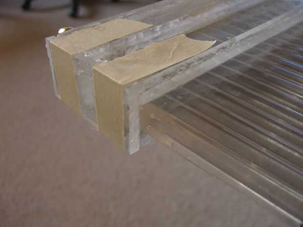 Cortar algunos trozos cuadrados y pegarlos a los lados de los colectores.  Habrá un boquete pequeño entre el lado del panel y la pieza lateral.  Esto debe llegar lleno.  Utilizar sellador de silicona al principio.  El problema con eso es que hay muy poco flujo de aire ahora dentro del colector, y el silicio para siempre tarda en endurecer.  Terminé usando una pistola de pegamento caliente, tomó unos pocos segundos, endurecido en 2 minutos y listo.  Sin esperas para los impacientes (como yo).