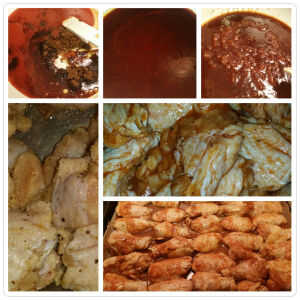 En una sartén a fuego lento añadir todos los ingredientes para la salsa. Mezcle todo uniformemente incorporados. Una vez que la mezcla comience a hervir ligeramente, retirar del fuego y reservar.