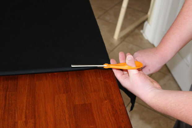 Coloque la hoja sobre una superficie limpia grande. Doble hoja en formas largo medio y cortar por la mitad a lo largo de la línea de doblez.