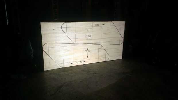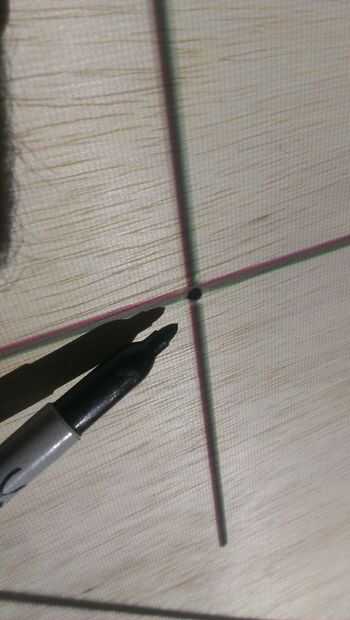 Cuando la imagen es correcta que tienes que utilizar un rotulador y marcar los 4 puntos que representan a las guías para la 'cerca', estos 4 puntos son en las 4 esquinas del rombo cerca de cada esquina redondeada. La 'guía' es el carril que utilizará para guiar la fresadora, para mantener el corte bajo control.