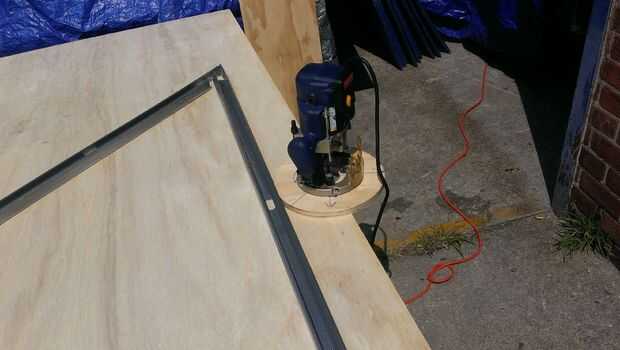Nota: Asegúrese de que nada esté por debajo de la madera, el router cortará, a menos que estás en una junta basura y está bien para cortar. Como veis en la foto, la broca de corte es levemente más larga que la madera es gruesa.