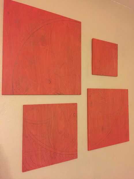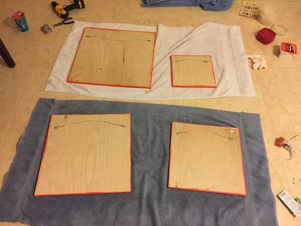 Mientras que este proyecto da resultados hermosos, es realmente ridículo lo simple que es el patrón real que hace. Lo primero es lo primero, aplica hardware de su elección a las partes posterioras de los paneles, teniendo cuidado de no para romper la parte delantera con los tornillos. Opté por cable de imagen, pero dependiendo del tamaño y forma de su proyecto usted podría ir con cualquier número de opciones de colgantes. Además de suspensiones, recomiendo pies adhesivos fieltro o goma en las esquinas inferiores de cada panel. Esto ayudará a mantenerlos niveles así evitará arañazos y marcando sus paredes.