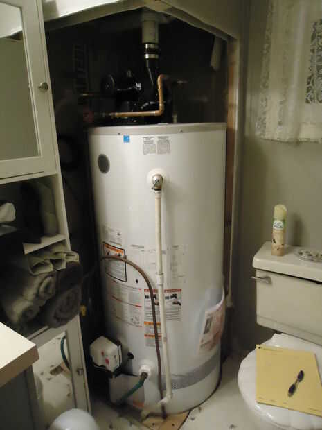 Como se puede ver en la foto es mi ubicación del calentador de agua en el baño junto al inodoro y no hay mucho espacio. El nuevo calentador de agua es también un galón 50 por lo que es ligeramente más grande que mi anterior por lo que la pared debe también ser movido sobre por consiguiente
