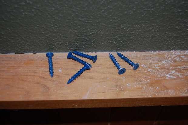 Tengo paredes de hormigón en mi sótano, así que mi única opción era Inserte los tornillos Tapcon dentro del hormigón. Es desordenado, pero (por supuesto) super fuerte.