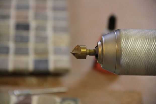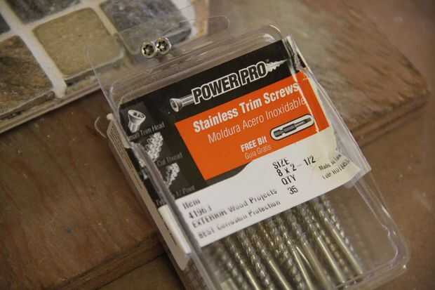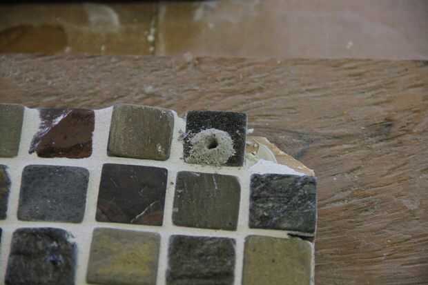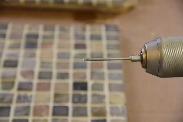 Para montar los paneles tomé un pedacito de taladro de azulejo/vidrio y agujereó a través de los azulejos y la madera contrachapada del forro. También decide utilizar una vieja broca avellanado para los tornillos por debajo del nivel de la superficie de la pieza. Los tornillos usé fueron los tornillos de acabado de acero inoxidable.
