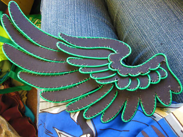 El alambre de la más fino, más fácil es a la forma. Así, grandes diseños en negrilla son bien con 5mm, pero mis alas difíciles no pueden usar más de 2,3 mm (1mm habría sido más fácil, pero no lo suficientemente brillante para mi gusto)