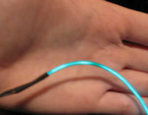 Ver http://www.neonstring.com/index.php?tasket=solder de cómo funciona el cableado, para darle una mejor idea de cuánto espacio a reservar para las uniones. Tenga en cuenta que EL alambre hace su propio circuito interno, no tienes que tener un 'bucle' set-up, sólo puede cortar el extremo libre con tijeras cuando termines.