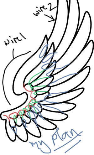 Hice algunas alas en illustrator, por lo que pude probar colores de cables antes de comenzar a trabajar, pero también podría trabajar la tiza en una pizarra.