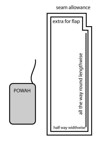 Para mantener el paquete de baterías o paquetes de seguros donde quiera que sean, puede utilizar la izquierda sobre tela formando una bolsita. Mida alrededor de la batería la manera larga, entonces el camino corto. Hacer un rectángulo largo ancho largo y medio (por lo tanto cuando lo ha cosido es completamente redondo, por supuesto), añadir un poco más de una aleta mantener el paquete de energía. Añadir un margen todo alrededor.