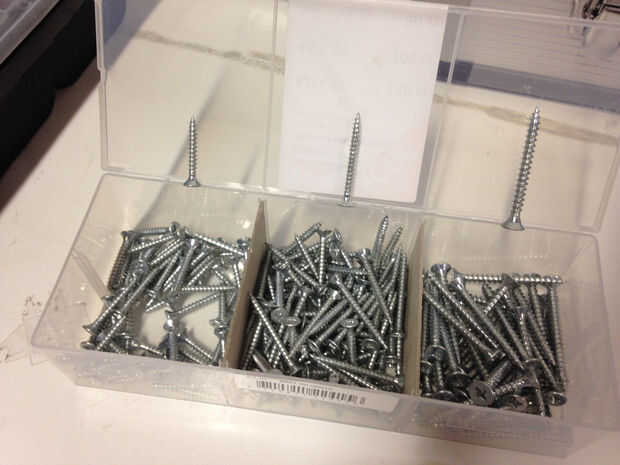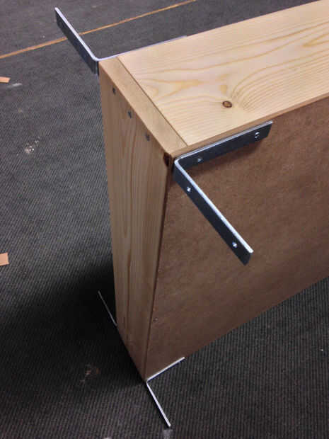 Para mantener este panel grande y pesada caiga, coloqué 4 escuadras más grandes en cada esquina. También puede atornillar tablas más grandes debajo del panel pero preferí estas conexiones. Asegúrese de que los tornillos que son los más bajos en el suelo, no entrar en conflicto con los ya en lugar. Pero no utiliza tornillos que son demasiado cortos, no quieres ver a tu perro Haz aplastado!