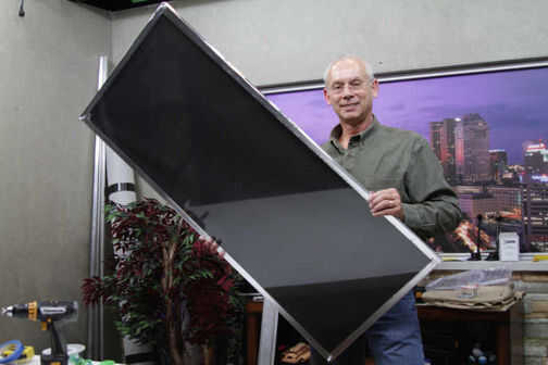 En la parte inferior del panel el aire entra a temperatura ambiente y se levantó a través del panel (aire caliente sube)... como sale el aire caliente, es exponencialmente siendo calentada más viaja antes de salir del panel. Además, el Cinefoil negro es muy delgada que se calienta rápidamente aun en días donde el sol va hacia adentro y hacia afuera. Cuanto más el panel se expone al sol, mejor funcionará.