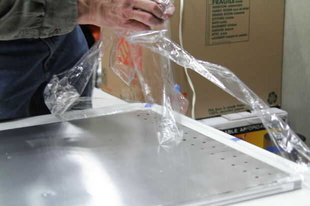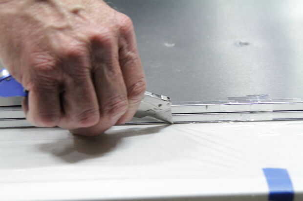 Corte la película tan cerca como sea posible en el marco de su panel y retire para preparar el grupo para la final grabación usando la cinta de aluminio.