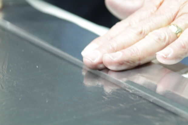 Sosteniendo la cinta un poco de la estructura, utilice sus dedos para cepillarse al apretar la cinta. Esto resultará en una aplicación muy limpia.