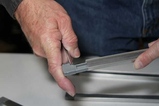 Después de cortar las piezas del marco al tamaño, coloque las esquinas de plástico.