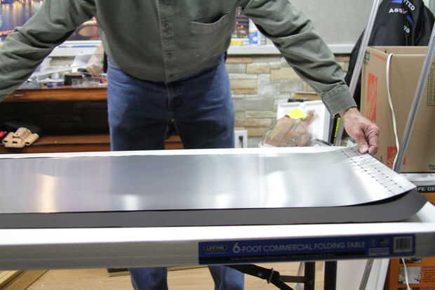 Utilice el tapajuntas de aluminio que ya cortado a la medida para el dimensionamiento de la lámina utilizando simplemente como una plantilla.