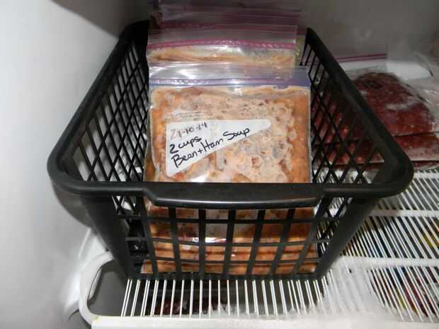 Entonces coloco bolsas de sopa en un estante en el freezer. Una vez que estén completamente congelados yo añadirlos a la parte posterior de mi pequeño cubo de sopa de congelador para que las sopas más antiguos se encuentran en la parte delantera y no Haz pasado por alto en caso de que han estado en el congelador un rato.