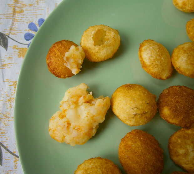 Puri (bolas) en la parte superior de la grieta. Colocar el relleno dentro de la puri.