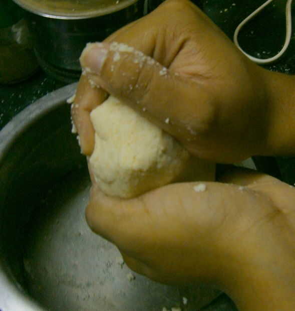 Combinar la harina de suelo y agregar agua lentamente y hacer una masa.