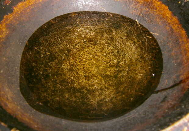 Calentar suficiente aceite para freír en un recipiente de fondo pesado. Debe estar en el medio alto. Tome una pizca pequeña de masa y probarla en el aceite. Si inmediatamente se levanta para arriba el aceite es perfecto para freír.