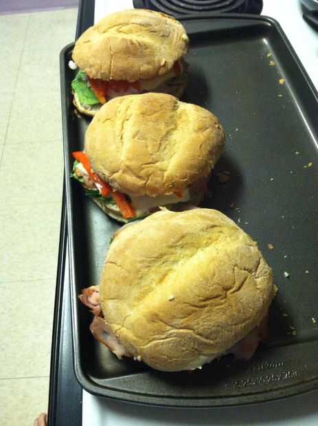 vamos a hacer paninis! ¿Qué? ¿No tienes una prensa? ¿Qué clase de persona loca eres??Eso está bien, tengo un plan.Primero y principal, tienes que tener una sartén bastante grande y una tapa lo suficientemente pequeña como para caber dentro de la sart
