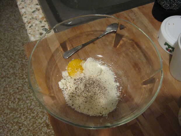 poner en un bol huevos, queso y pimienta,