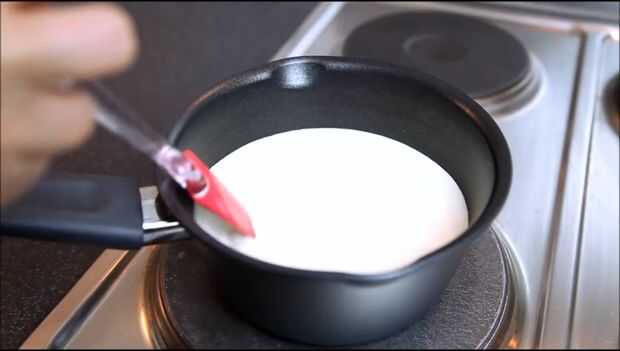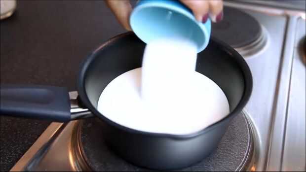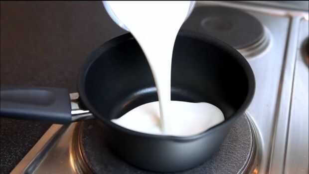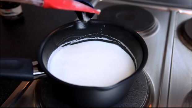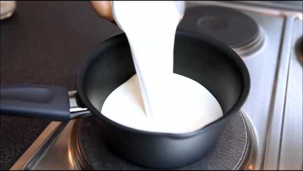 En una sartén añadir nata, leche y azúcar. Dar un buen revolver y cocinar hasta que comience a hervir. Calor debe ser mediano para que nada se quema o se pega a la parte inferior de la bandeja. Una batería de cocina antiadherente sería más apropiado en este caso, o tal vez un pesado inferior pan.
