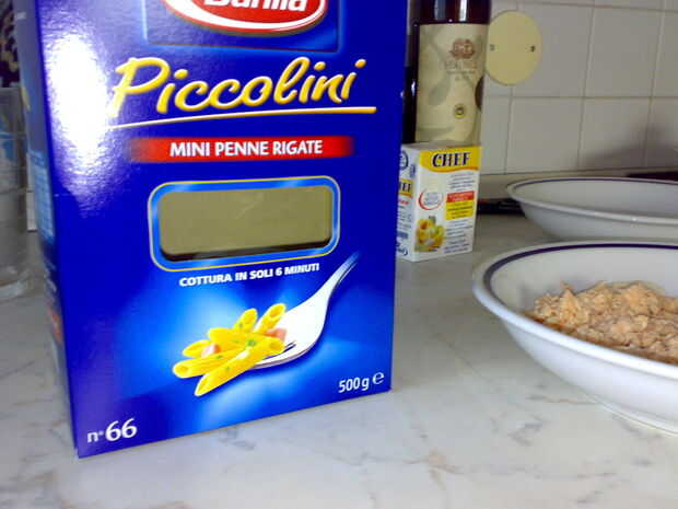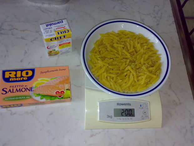 Panna de pasta e salmone Pasta con nata y salmón en 6 minutos (1 / 5 paso)