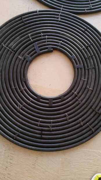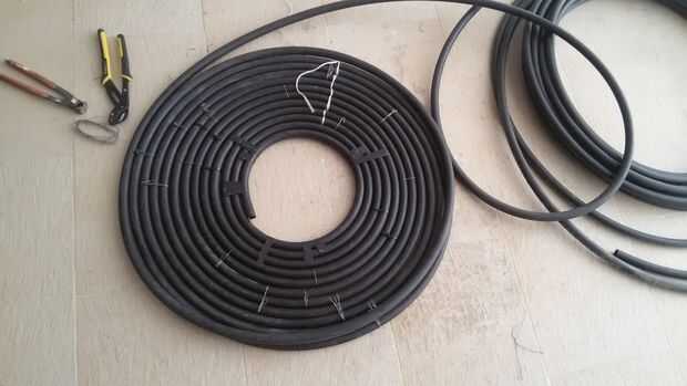 Il tubo viene arrotolato e fissato chiken fascette da elettricista e fil di ferro.