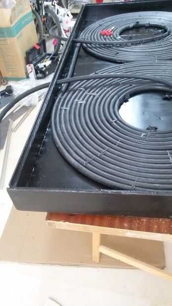 Sopra il foglio di catrame isolante, viene posato un foglio di lamiera zincata farà da contatto diretto col tubo arrotolato ed ha lo scopo di calentar ed accumulare il calore solare.