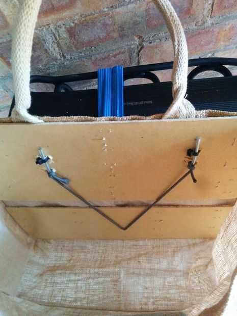 Martillo grapas planas (martillo en un ángulo para evitar estallidos nuevamente hacia afuera). Se puede utilizar cartón más grueso si lo desea, pero prefiere un bolso más pequeño más ligero y a la cinta sobre las grapas. CUIDADO QUE SON MUY FILOSAS.