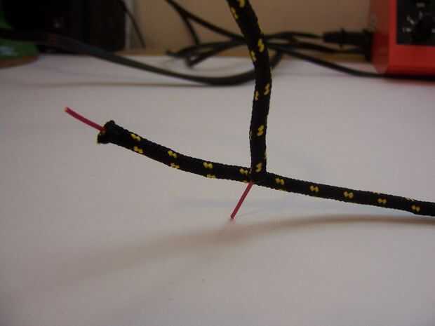 Una vez extraído el corazón, alimentar el todo con muy poco dinero en un pedazo de cable de núcleo sólido. Esto hace que sea mucho más fácil alimentar el muy reducido en el cable flexible utilizado en audífonos/auriculares.