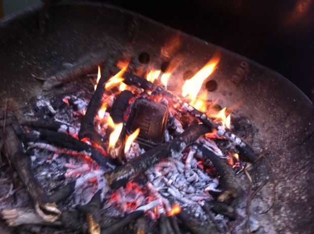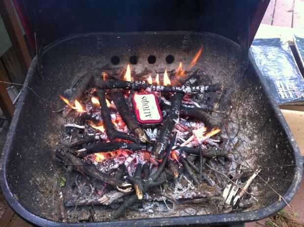 Después de hacer el fuego tendrá que dejar la lata configurar durante aproximadamente media hora. O hasta que el humo y las llamas dejen de salir del agujero.