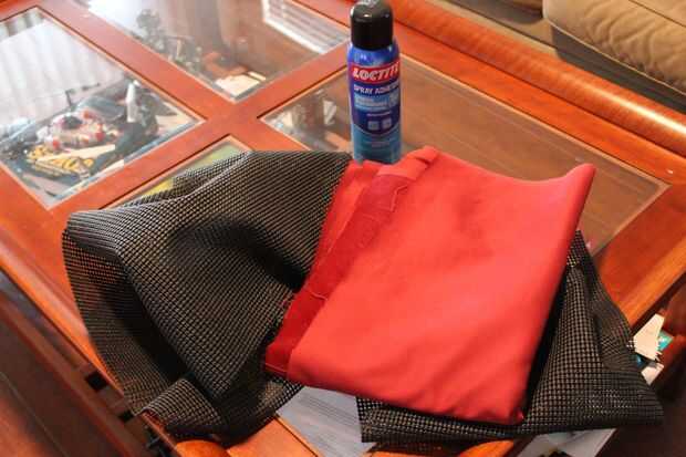 Tenga en cuenta que no necesitará usar fácil del trazador de líneas para el revestimiento inferior. Encontramos después que tiene potencial para dejar un residuo pegajoso por el adhesivo en aerosol que se escapa por los agujeros. Le recomendamos que la próxima vez con un tejido gomoso que no tiene agujeros como un forro de alfombra gruesa.