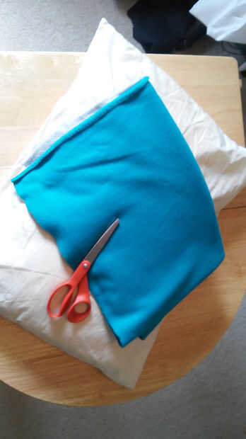 elementos necesarios para ello1.) tijeras2.) (1 + 1/2) yardas de paño grueso y suave sólido3.) (1 + 1/2) yardas de impresión o paño grueso y suave de patrón4.) (2) cuerpo de almohadasPaso 1: Paso 1 Establecer el sólido de la tela. Entonces impresa pa