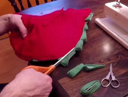 Coser a lo largo de la costura central (hacia abajo en el centro de la cabeza). Retire los pasadores y recorte el exceso aleta y tela en el interior.