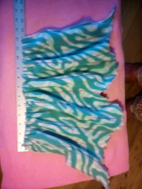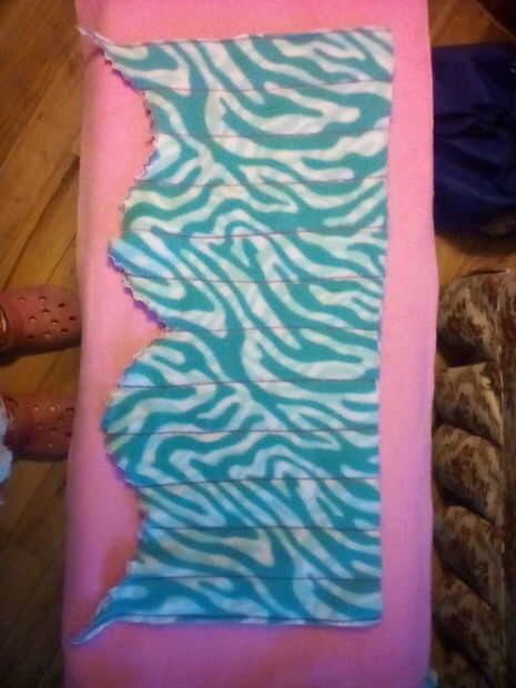 Marca las líneas donde quieras puntadas decorativas en su aleta de cola. Para hacer las líneas en mi aleta de cola que utiliza el más estrecho zig zag la puntada mi máquina hace y simplemente les uniformemente a partir del centro espaciados. Utilicé hilo que emparejado el color 2 para que el contraste aparece, pero de nuevo... licencia artística. ¿Lo que parece mejor a usted? Para ahorrarse algunos angustia por favor practique esto en doble capa de tela de desecho antes de intentarlo en paño grueso y suave. Recuerde, no hay ninguna selección mal puntos con lana o terciopelo!