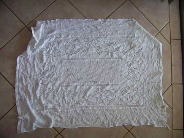 No tengo un mantel que podría hacer desaparecer del ámbito de mi esposa, y quería algo con "carácter". Mientras limpiar mi esposa armario encontramos esta manta de bebé, tal vez tiene un valor sentimental, pero sentimiento no puede interponerse en progreso... Ha manoseado un poco, los bebés no respetan la propiedad...