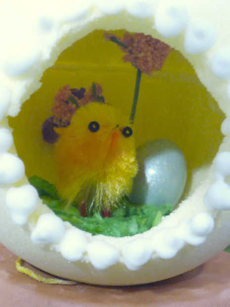 Un interesante artículo de 1987 (!) sobre el tema se puede encontrar aquí: http://bit.ly/10eDYbq otros, de the New York Times, señala que mientras huevos comerciales actuales debe ser totalmente comestibles, primeros modelos tenían escenas de papel dentro. http://bit.ly/10eDYbq