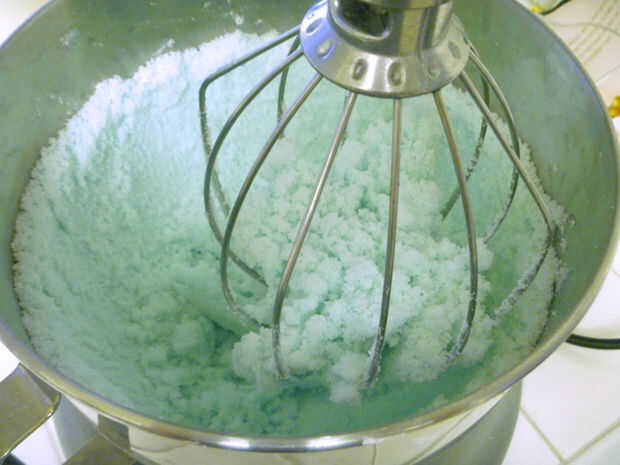 Colocar azúcar y merengue en polvo en un tazón grande, bata para combinar. Añadir agua y mezclar con batidora eléctrica o una cuchara. Si son colorear los huevos, agregar color al agua antes de mezclar con el azúcar. Luz huevos pastel--que trabajan mejor para difusión de la luz--utilizar sólo 1 o dos gotas de colorante líquido. Mezclar hasta combinar bien, amasar con las manos si es necesario. Mantener un ojo hacia fuera para el merengue en polvo - o color-terrones, que a veces forman. Trabajar en la mezcla con los dedos, si es necesario.