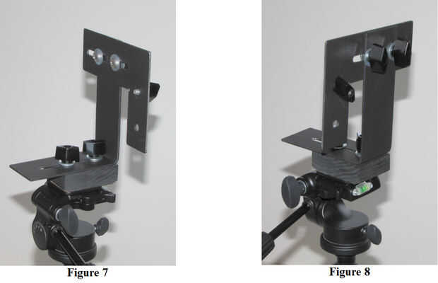 Los soportes se unen entonces a la montura de trípode con dos arandelas planas de ¼" y botones de barra de dos ¼ (figuras 7 y 8).