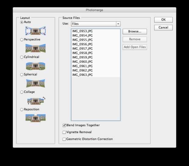 Te recomiendo poner los archivos para una tentativa de un panorama en una carpeta ya que hace más fácil la importación.