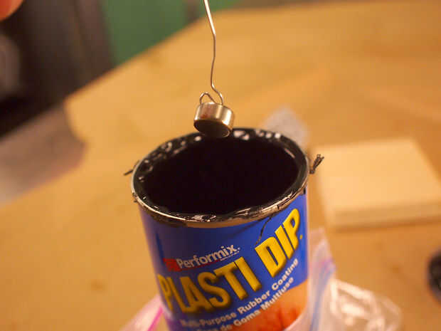 Después de unos 20 minutos el imán era sobre todo seco. El imán fue quitado de la clip, revelando una pequeña sección donde no aplica el dip. Pude para dab en inmersión un poco extra en este lugar, y luego deje que se seque durante unas horas los imanes sumergidos. Después, mis imanes fueron completamente recubiertos con protección de goma.
