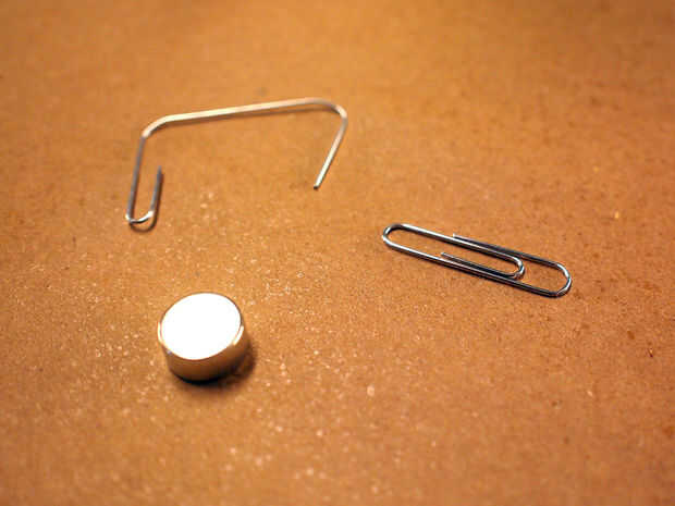 Puesto que los clips son magnéticas, hicieron la herramienta perfecta que me ayude a la inmersión y la capa de imanes. Abrí un clip, hacer un gancho en un extremo y el borde recto en el otro. Puede el PlastiDip es metal, por lo que se aconseja para verter la inmersión en una desechable. envase no ferrious (yo usé una taza de papel). Colocando el imán en el extremo derecho el imán lentamente fue sumergido en el PlastiDip, va poco a poco ayuda a da una capa uniforme. Después de sumergir el clip fue colgado por el extremo del gancho para permitir que el imán se seque.