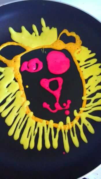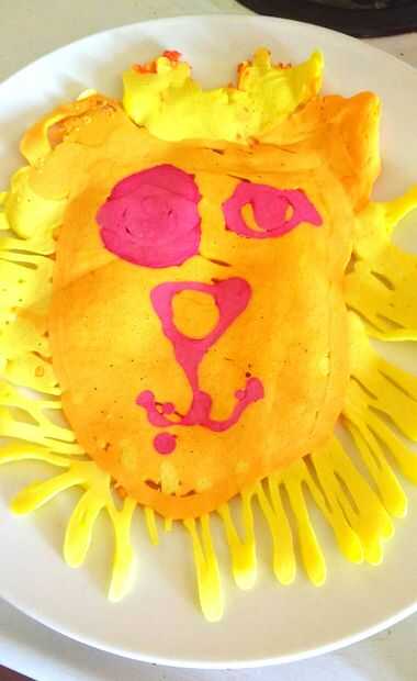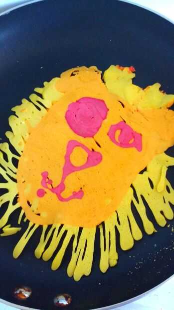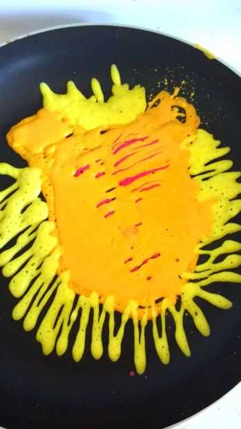 La clave para mantener los colores vibrantes (y no metiéndose en un lío dorado) es que el calor más bajo. Configurar mía a medio camino entre media-baja y media. Esto, entonces, requiere que deje su panqueque tardan un poco más en cocinarse. Para crear una obra de arte, tómate tu tiempo y no establecer un límite de tiempo!