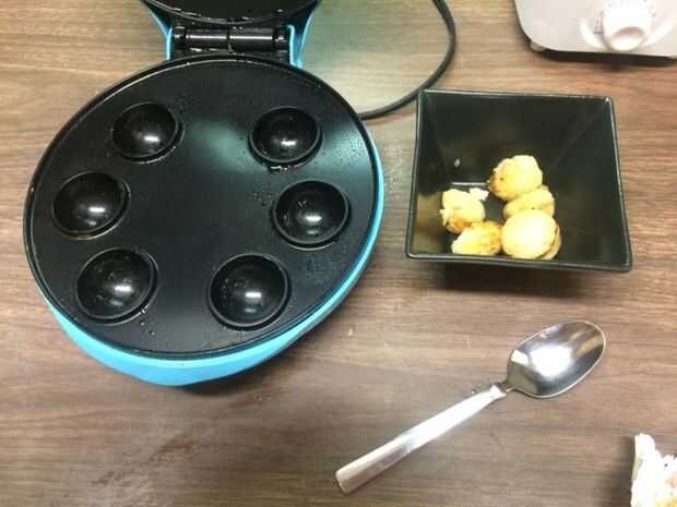 Sacar las bolas de panqueques cocidos en un recipiente separado. Como antes, prepare el cake pop maker con aerosol y repita los pasos 5 y 6 con la masa restante, hasta que la masa ha sido cocinado.